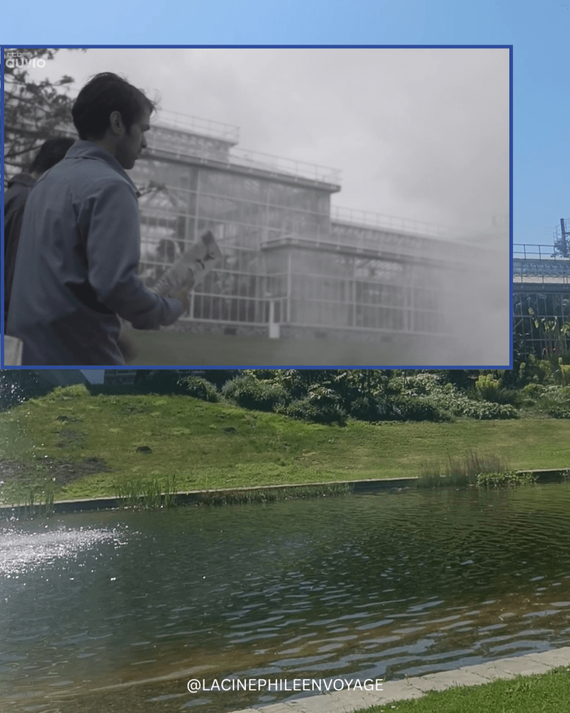 Le jardin botanique de Meise et ses magnifiques serres; à droite une serre centrale inaccessible au public : peut-être un lieu de tournage du film également ?