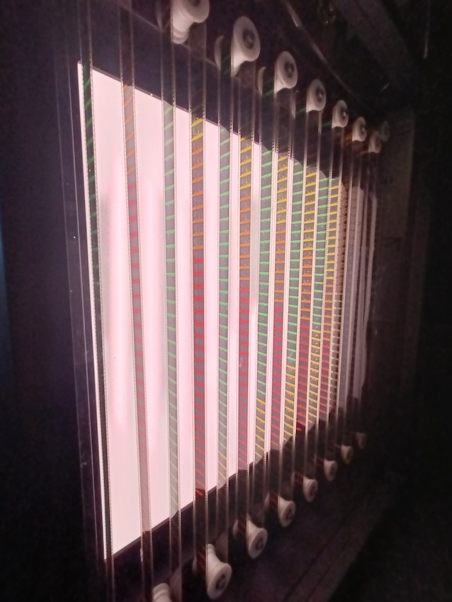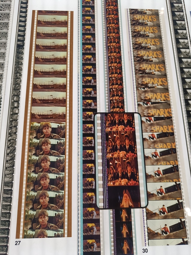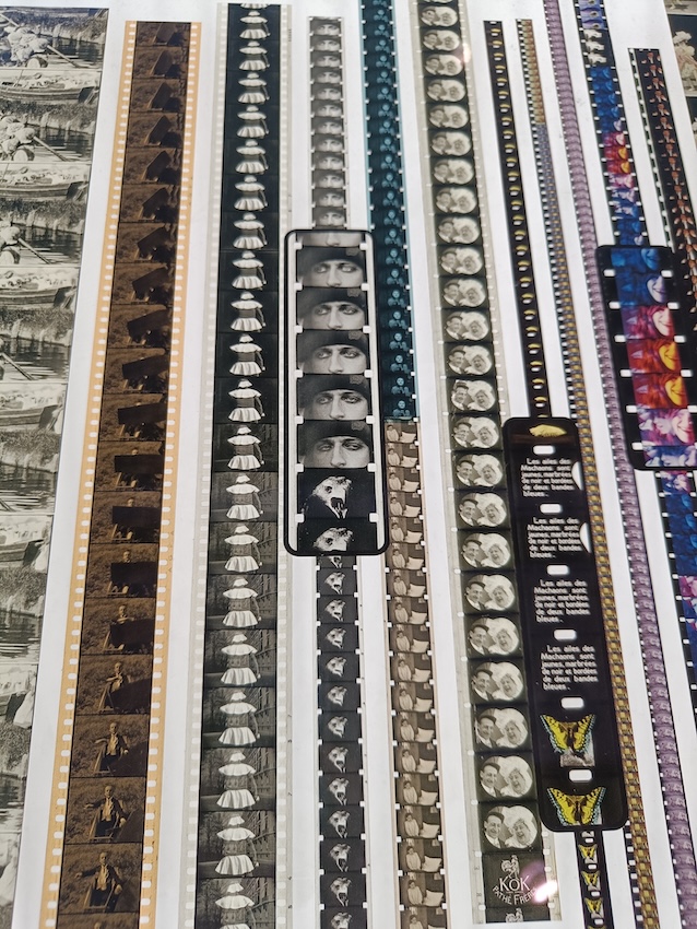 En visitant l’expo, vous avez automatiquement le droit de voir la collection permanente du musée du cinéma d’Amsterdam : quelques caméras, projecteurs et leurs ancêtres (un zootrope et un mutoscope avec un court métrage de Charles Chaplin, entre autres). Collection réduite par rapport à d’autres établissements de ce type (la Cinémathèque française, le musée de Turin…), par contre une partie que j’ai trouvée fascinante présente l’histoire de la pellicule de film à travers les époques, de 1899 à nos jours. Des morceaux de pellicules de tous les formats – 35 mm, avec bande sonore, noir et blanc, couleurs, en Cinemascope – permettent ainsi de voir la folle évolution du cinéma au cours du 20e siècle, ce format physique ayant maintenant été quasi remplacé par le numérique que l’on ne peut pas voir puisqu’il est stocké sur serveur et disque dur, il n’a donc pas de « matière ». On prend conscience en voyant cette vitrine de la beauté de la pellicule photographique et on comprend pourquoi certains grands réalisateurs l’utilisent encore (Quentin Tarantino, Christopher Nolan, Steven Spielberg, Wes Anderson…).