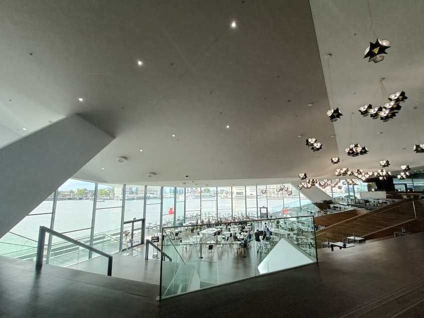 Il serait injuste de parler du musée du cinéma d’Amsterdam sans aborder l’architecture du lieu. Situé en face de la gare centrale de l’autre côté du canal Ij, sa forme assurément moderne attire le regard, vous pouvez le rejoindre en montant à bord du ferry gratuit qui fait la traversée toute la journée entre la gare et Amsterdam-Nord.
