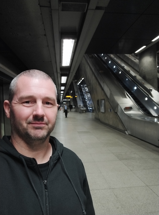 Tenter d’obtenir les images pendant la journée, ça n’a pas été facile car cette station de métro est très fréquentée avec beaucoup de navetteurs en transit. Je devais donc attendre qu’une rame de métro démarre pour que le quai se vide pendant un court instant, me permettant de vite prendre mes photos. Les regards étranges des gens sur le quai qui me voyaient faire, c’était super. Ils devaient se demander ce que faisait ce mec à genoux avec deux smartphones en mains 🙂