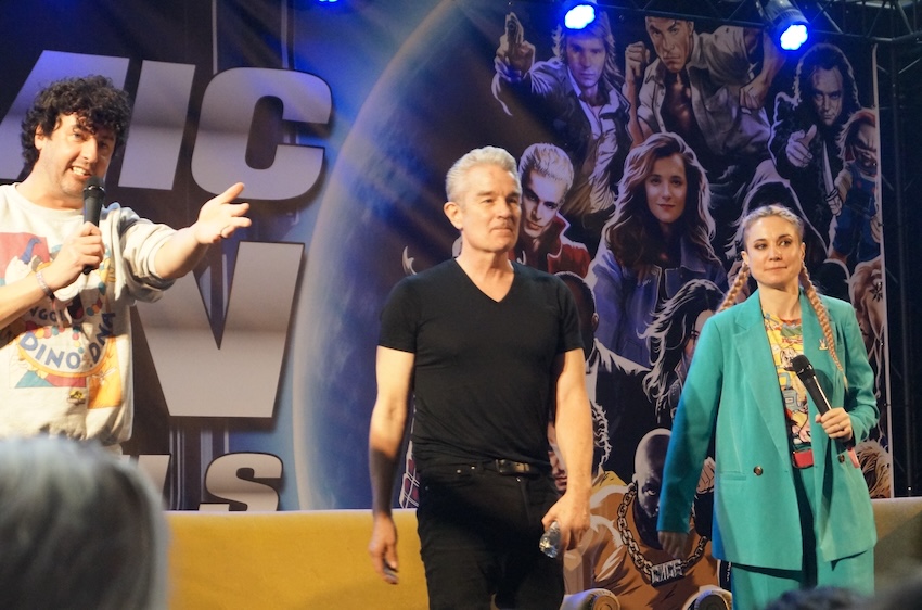 Mais LA rencontre qui à mes yeux était la plus importante, c’était avec le toujours très sexy James Marsters, l’inoubliable interprète du vampire Spike, anti-héros par excellence de la série culte Buffy contre les vampires. Vingt ans que je ne l’avais pas croisé en convention ou en concert (avec son groupe Ghost of the Robot), c’est donc avec énormément de plaisir que je l’ai revu le temps d’une photo, avant d’assister à son entretien sur la scène principale de cette édition du Comic Con, avec les humoristes Matthew Highton et Bec Hill de retour pour animer les q&a.