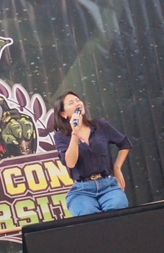 Jessica Henwick sur la scène secondaire du Comic Con Brussels.