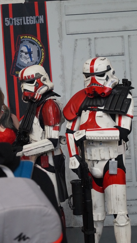 On pouvait comme d’habitude voir le travail de passionnés qui recréent de toutes pièces les costumes et décors de leurs univers préférés, que ce soient les films Star Wars, Star Trek, SOS Fantômes, Retour vers le Futur ou les séries et animés. Notamment un Tie Fighter grandeur nature à l’intérieur duquel on pouvait s’installer pour se faire prendre en photo. Le ring de catch était malheureusement réapparu juste en face de la scène où se tenaient les sessions de questions-réponses avec les acteurs et actrices, ce qui n’est vraiment pas judicieux, surtout que la place ne manque pas dans la Gare Maritime voisine aussi occupée par le salon. Peut mieux faire, Comic Con Brussels ! Car oui, les amateurs de catch – ou WWE – peuvent assister à chaque édition à des « body slams » ou autres catapultes entre des sportifs belges de la discipline (même Spider-Man était là !).