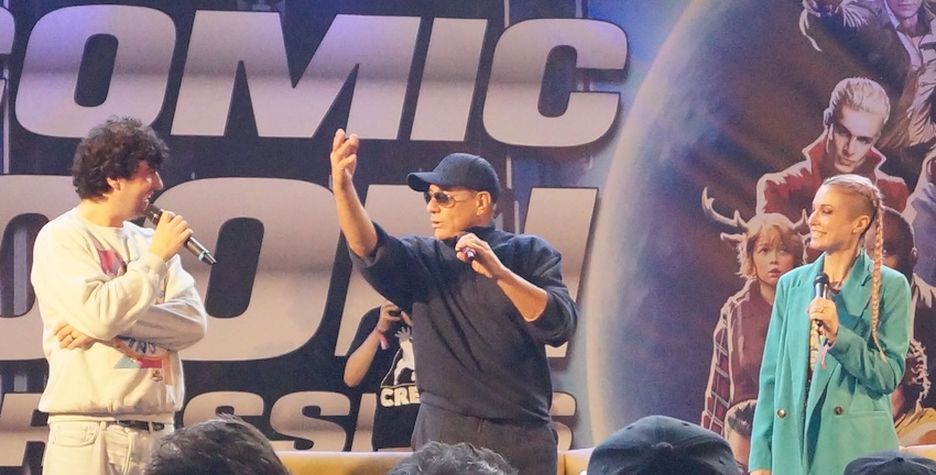 Le sympathique artiste martial, qui a explosé au cinéma grâce à son premier grand rôle dans le film d’action Bloodsport en 1988, nous a démontré quelques mouvements de gymnastique en guise d’étirements, nous expliquant sa routine quotidienne, lui qui est toujours en pleine forme à 63 ans. Nous avons en plus eu droit à son célèbre déhanché du film Kickboxer, moment furtif qui a conquis l’audience. En fin d’entretien devant une salle comble, l’acteur belge a reçu le CCBX Lifetime Achievement Award remis par l’organisation, célébrant sa carrière et sa popularité toujours aussi grande, un prix en forme de gaufre de Liège dorée, et c’est sous l’appellation de « waffle from Brussels » que Jean-Claude Van Damme a quitté la scène sous une réelle ovation 😀