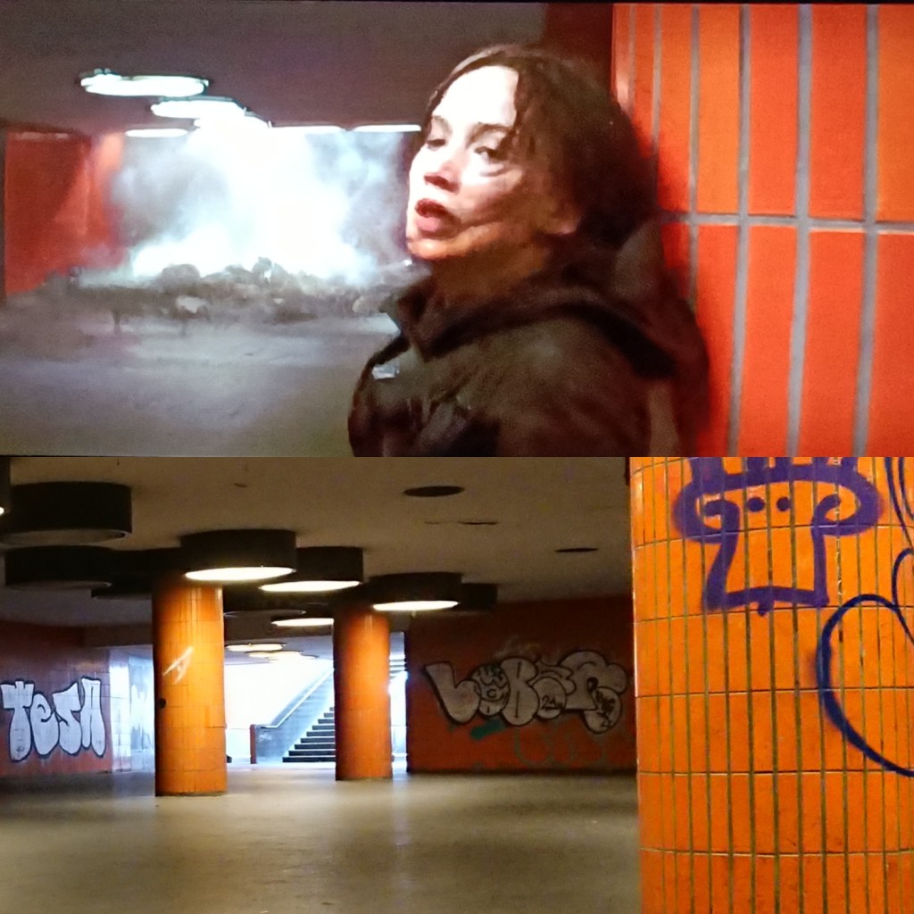 Station de métro Messe Nord/ICC à Berlin; film (2015) vs réalité (2021). Photos @patrickpeeters0