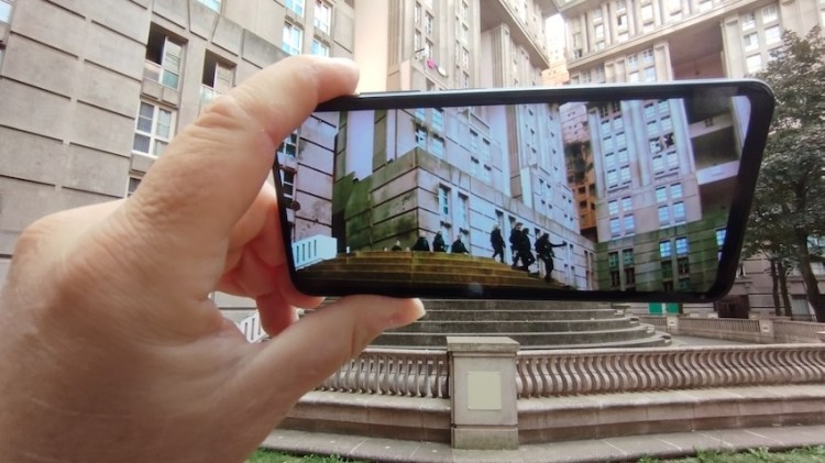 C’est seulement à la fin de mon tour que j’ai réalisé que mon smartphone pouvait prendre des photos avec un format d’image qui se rapproche du format Scope utilisé sur le film, du coup j’ai rapidement tout recommencé : j’ai pris des photos tout en tenant mon autre téléphone sur lequel se trouvaient les images du film. Mais j’aime aussi obtenir un cliché net qui correspond le plus possible à l’image du film. Et pour cela, le cadre large de l’appareil photo était parfait.