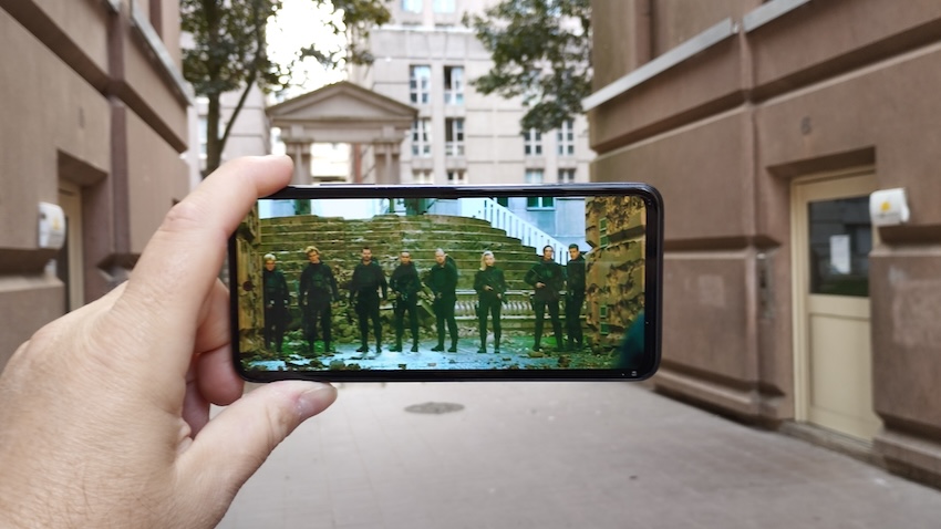 Et cette fois, essayer de faire coller les photos tirées du film La Révolte partie 2 avec le lieu de tournage réel, c’était encore plus spécial, à chercher de petits détails pour faire coïncider la capture d’écran sur la photo, vraiment fun.