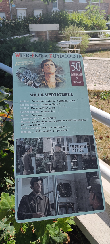 Une façon réellement immersive de partir dans les traces de Belmondo et compagnie, pour le bonheur des touristes curieux comme pour celui des cinéphiles en pèlerinage ! Un petit conseil si vous passez par Bray-Dunes, allez pousser la porte de l’Office du Tourisme, Place Jérome Rubben, pour y glaner des infos, et si vous avez de la chance vous y trouverez encore un plan de l’itinéraire sur les traces du film de Verneuil, et puis à l’extérieur, ne ratez pas un premier panneau vantant Week-end à Zuydcoote.