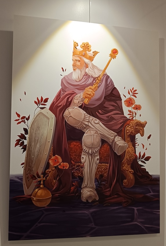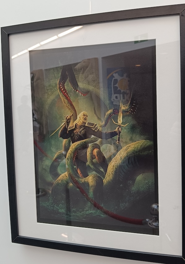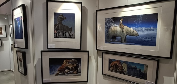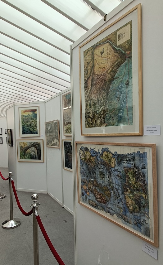 Ce festival aux visages multiples par tout ce qu’il offre aux amateurs garde sa taille raisonnable alors qu’il pourrait aller investir un lieu plus grand pour faire venir plus de monde, personnellement j’apprécie qu’il garde sa taille humaine, même si les artisans et « reconstitueurs médiévalistes » (ne les appelez pas “cosplayeurs” !) installés en extérieur ont dû composer avec la pluie durant ce weekend à la météo changeante (vive la gadoue). Lorsque j’arrive, je commence toujours par la partie expositions qui met en avant des talents dont les affiches ou cases de bandes dessinées nous plongent dans des mondes fascinants inédits ou bien connus (The Witcher et cette année aussi À la Croisée des Mondes), en effet l’invité d’honneur de cette partie était l’artiste anglais Chris Wormell qui a illustré les livres de Philip Pullman contant les aventures de Lyra Belacqua.
