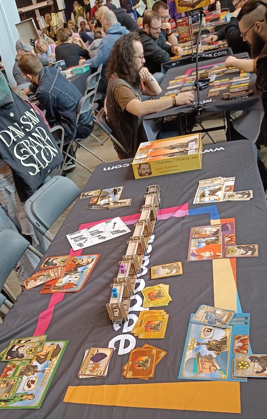 Outre les concerts organisés tout le weekend – groupes de folk métal, de musique irlandaise ou viking, etc. – on pouvait encore s’asseoir à une table de jeu afin de passer un moment de détente en testant essentiellement les jeux des éditions Asmodée, partenaire habituel du festival. Plusieurs boutiques proposaient à la vente de nombreux jeux de rôles, jeux plus familiaux ou decks de cartes en tous genres et à tous les prix, un choix énorme d’où il m’est impossible de ressortir les mains vides !