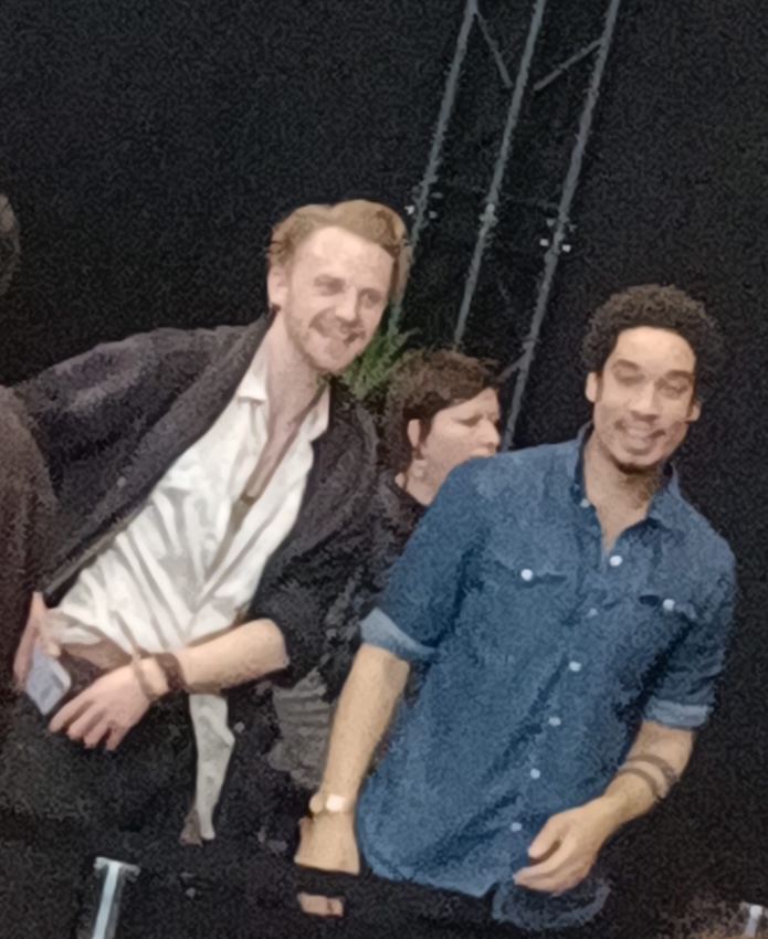 Chacun s’est prêté au jeu des séances photo, dédicaces et questions-réponses avec le public de fans venus les voir. Un moment particulièrement amusant le dimanche fût lorsqu’une troupe de chevaliers vint faire le show devant les acteurs dans une démonstration de combats à la hache et à l’épée. Amusé, Tom Canton n’a pas résisté à l’envie de s’y frotter également, se glissant dans le heaume d’un chevalier avant d’y recevoir des coups d’épée pour voir ce que cela fait !