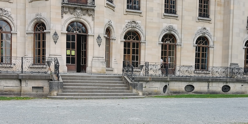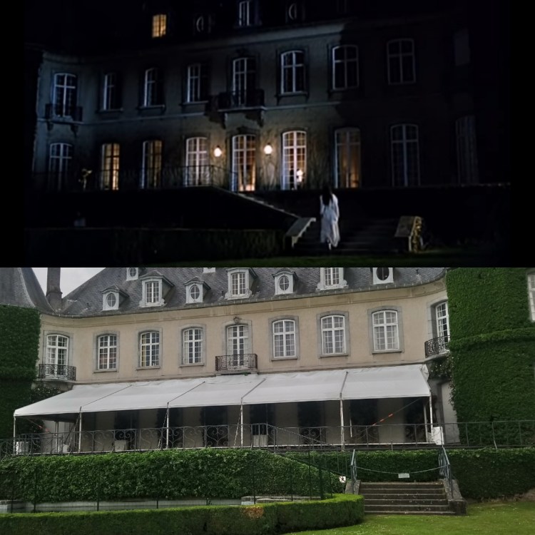 Si le film de Everett se concentrait sur l’intérieur du manoir, le film de Corbiau nous le montre également de l’extérieur; l’ancienne demeure des barons Empain s’est vue ajouter deux ailes latérales en 1926, lui conférant un air classique de style Louis XV.