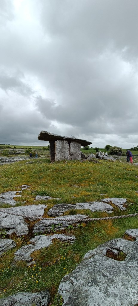 - Le Dolmen de Poulnabrone (Poll na Bron en gaélique irlandais), un portail funéraire du néolithique situé dans la région du Burren. Posé sur un champ désolé de calcaire érodé par la pluie, c’est le second plus grand dolmen d’Irlande et aussi le plus connu grâce à sa forme.
