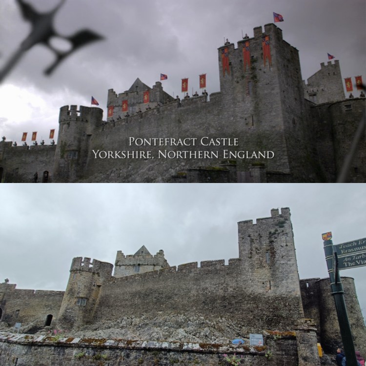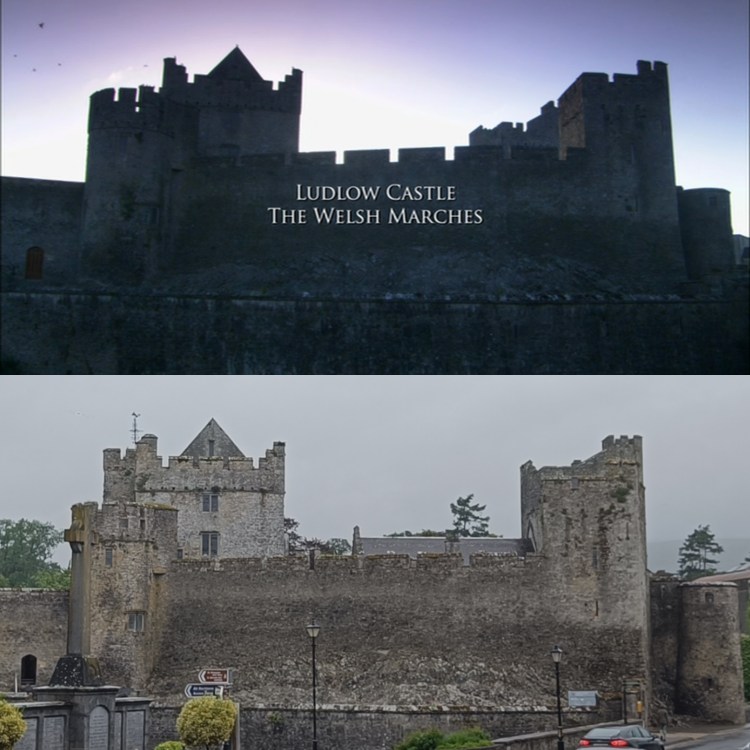 Pour cette série, le château de Cahir fait juste office de figuration, il est légèrement modifié par effets numériques afin de devenir à la fois la vue d’ensemble du château de Ludlow (saison 2) et celui de Pontefract (saison 4). Les effets de lumière et les petits ajouts sur ces inserts qui ne durent que quelques secondes à l’écran ne cachent pas pour autant l’évidence du lieu de ces prises de vue. Le château est en tout cas contemporain à l’action de la série (16e siècle) et Henri VIII fut le premier roi officiel de l’Irlande qui était déjà rattachée à la cour d’Angleterre sous une autre appellation.