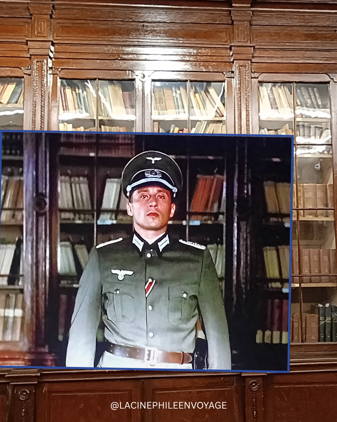 Matthias Schoenaerts a également tourné une scène ici, l’acteur belge interprète le charmant soldat allemand dont le personnage joué par l’actrice américaine Michelle Williams tombe amoureuse. On peut le voir attendre dans le couloir du musée avant d’être invité à rentrer dans le bureau de son officier en chef. Il se tient lui aussi devant l’imposante bibliothèque vitrée qui se trouve dans cette pièce.