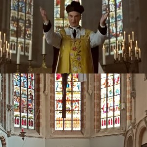 Passons à un deuxième lieu de tournage, toujours en Province du Hainaut : l’église Saint-Nicolas de Myre à Enghien. La scène de messe du début du film et une séquence plus loin y ont été filmées.