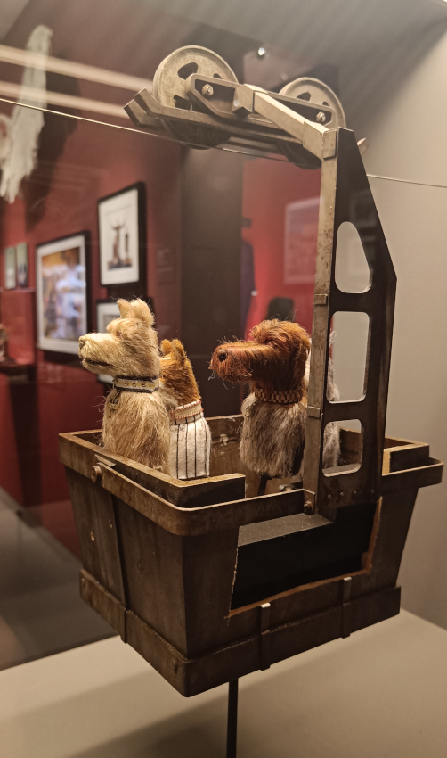 L’expo propose de voir de très près des dizaines de costumes, de documents écrits, de photos de tournage, mais aussi les maquettes utilisées dans les films, les marionnettes de ses deux longs métrages en animation stop motion, Fantastic Mr. Fox et L’île aux chiens, et c’est vraiment passionnant de rentrer de la sorte dans son univers, de salle en salle.