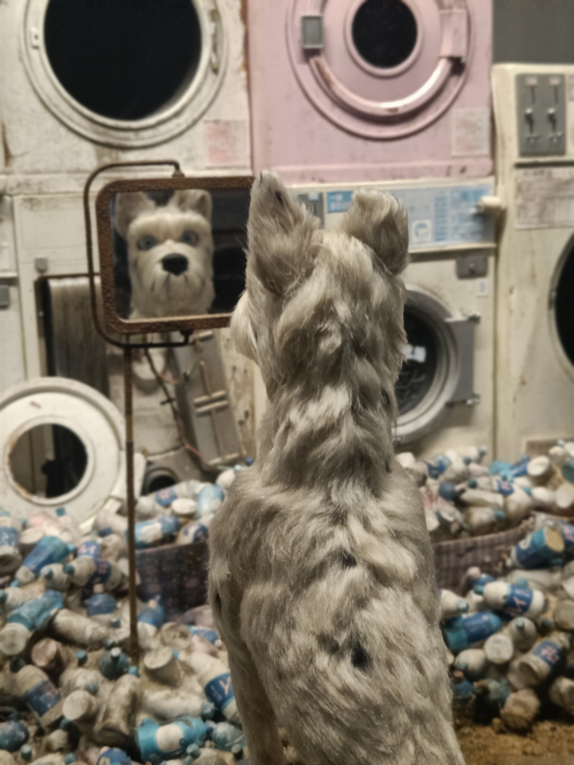 Plus loin nous est donnée à voir la maquette du train du Darjeeling Limited, une mise en bouche avant d’être plongé.e dans la beauté des décors et des marionnettes de ses deux films en animation de volume (stop motion). Je pourrais passer des heures à observer ces petits personnages articulés aux regards si vivants. La minutie avec laquelle ils sont confectionnés est simplement de l’art avec un grand a.