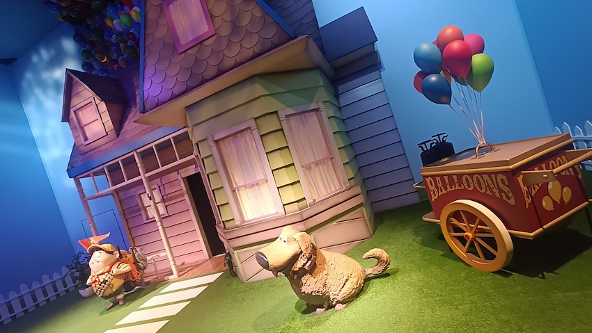 On pénètre dans le parcours via la maison de Carl dans Là-haut, Doug et Russell nous accueillent devant la façade et une fois passée la porte d’entrée, nous déambulons de film en film dans les décors en taille réelle, sans pouvoir revenir en arrière (ne ratez pas vos photos). Les films les plus populaires de Pixar Animation Studios prennent ainsi vie devant nous, voyez un peu ce qui suit !