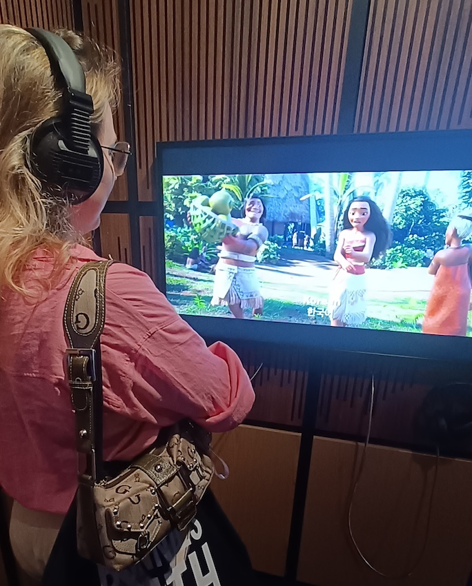 Une salle est consacrée à la musique des films, que ce soit les chansons des classiques animés ou des œuvres plus contemporaines, mais aussi les séries, les attractions, les longs métrages chantés ou non. Des écouteurs sont disponibles pour se mettre en immersion – libre à vous de chanter à voix haute ou non – et des écrans célèbrent l’art du doublage des films et des hymnes disneyens dans les différentes langues du monde. Oui, vous pourrez même écouter « Libérée, délivrée » en anglais, en français, en espagnol, en roumain ou en néerlandais !