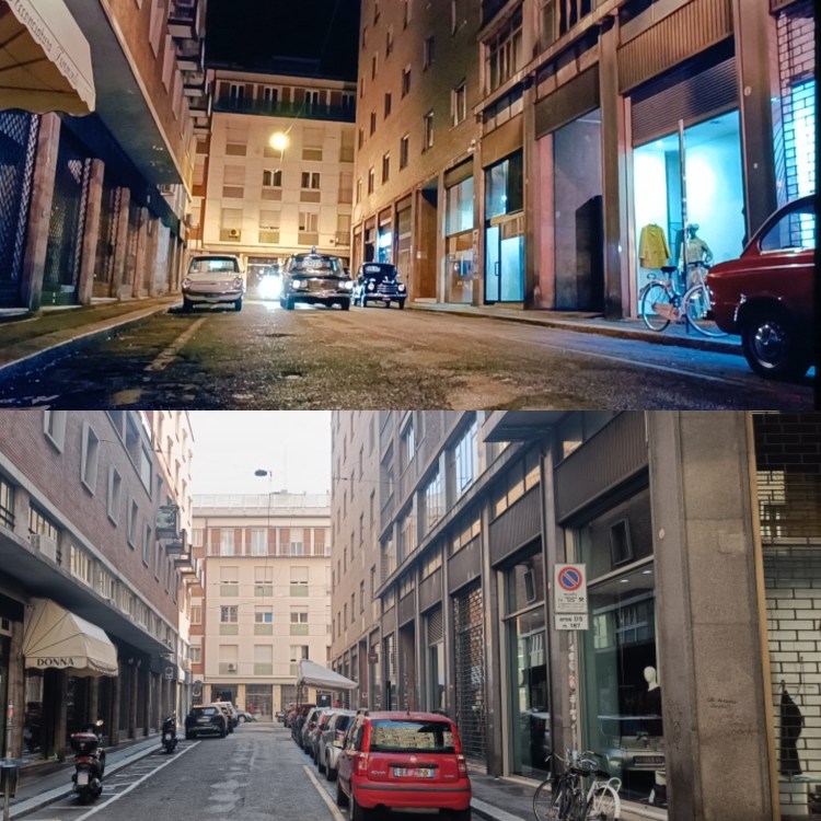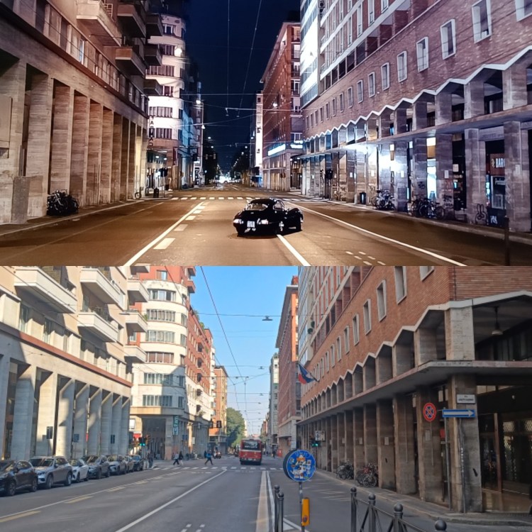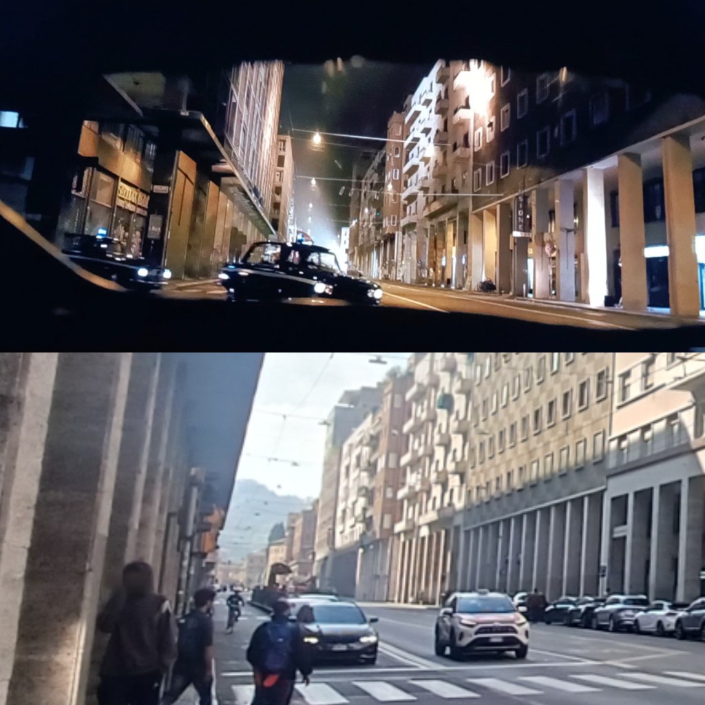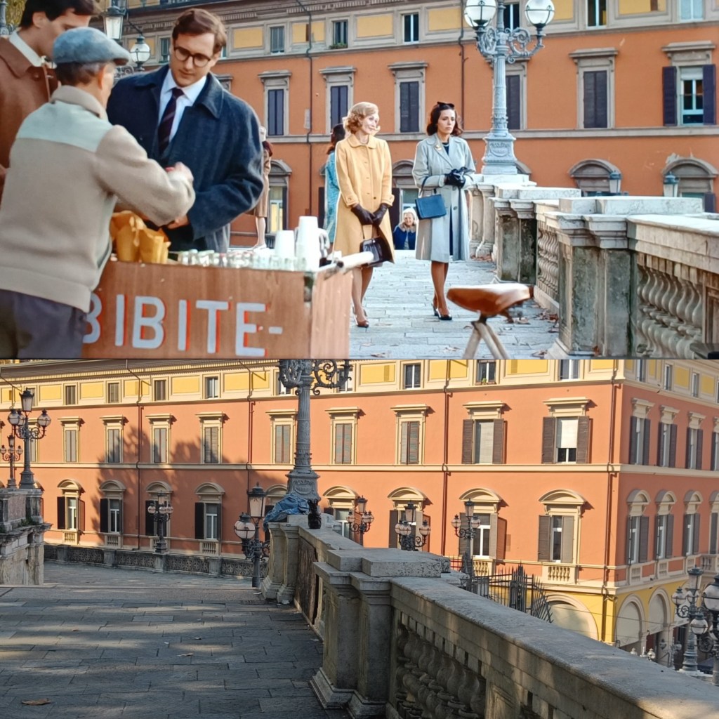 Scalinata del Pincio à Bologne; film (2021) vs réalité (2025)