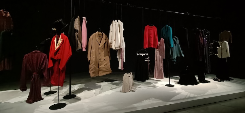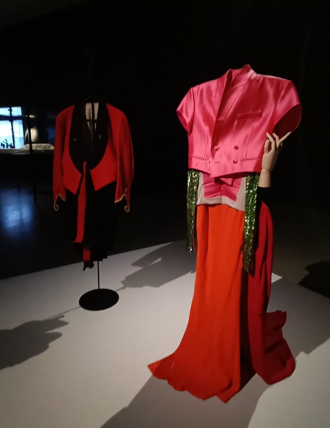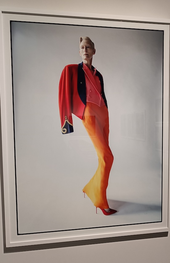 Féminine, masculine, androgyne, intemporelle, éternelle, l’expo est à l’instar de sa tête d’affiche : inclassable. C’est d’ailleurs autant l’actrice que le mannequin ou l’égérie d’artistes qui nous sont données à rencontrer à travers les images, certaines en mouvements, d’autres statiques : photos de mode, portraits de magazines, créations artistiques, happenings… Une zone, réalisée en duo par Tilda avec l’historien de la mode Olivier Saillard, est dédiée aux tenues portées lors de galas ou d’avant-premières, certains costumes de films et des pièces ayant appartenu à ses ancêtres aussi. Chaque vêtement est porteur d’un message, plus ou moins direct.